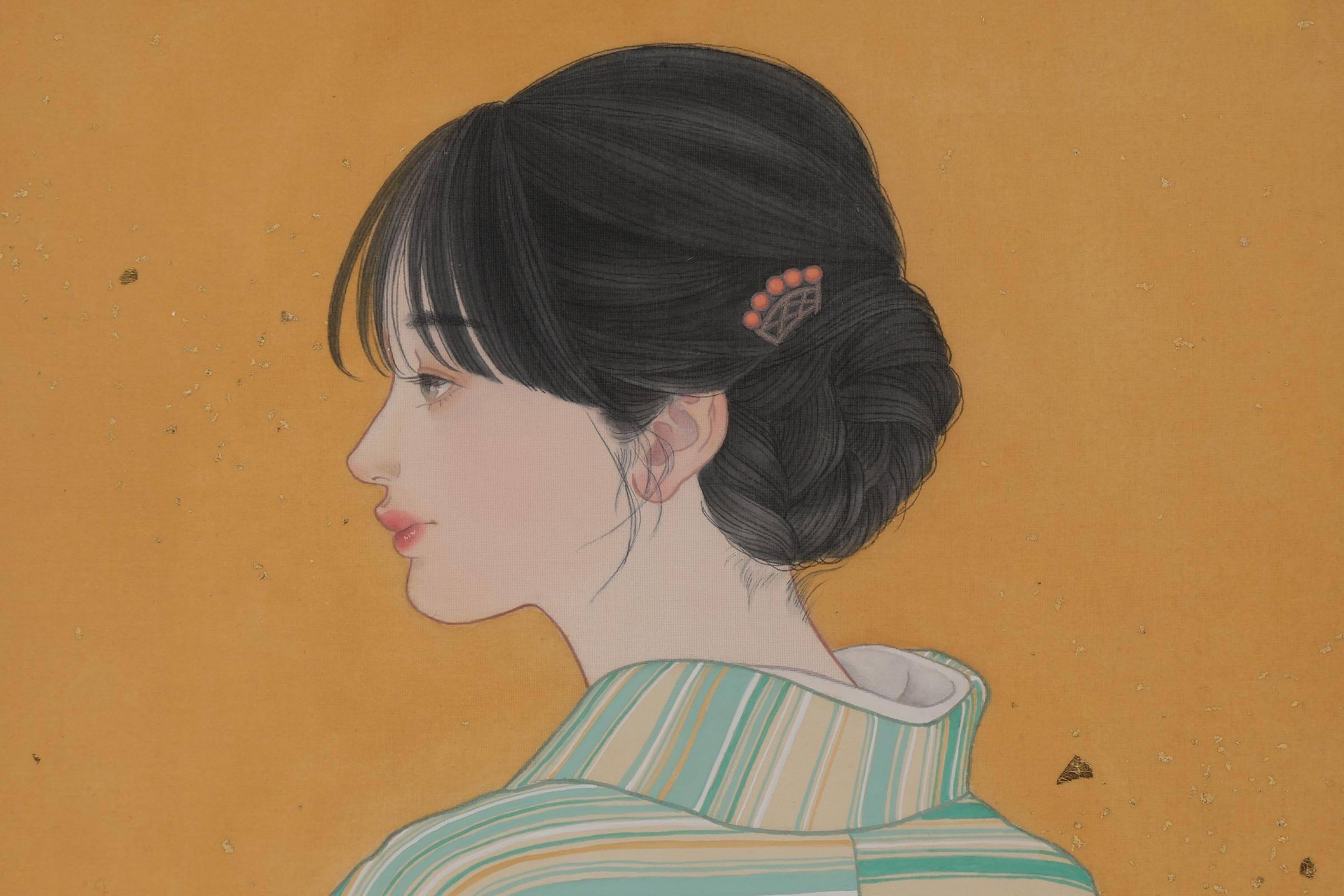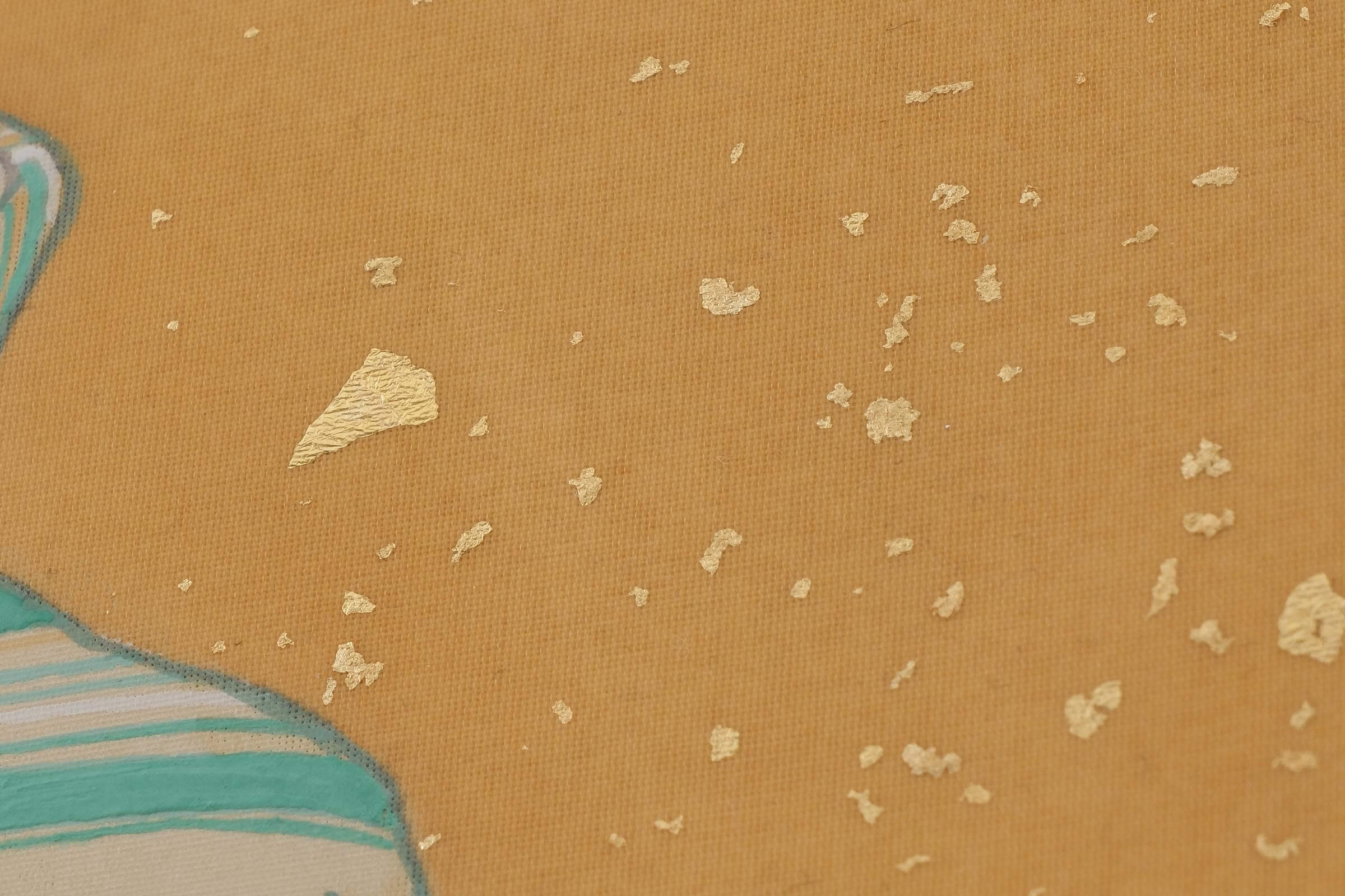 - 絹、岩絵具、水干絵具、墨、金泥、箔