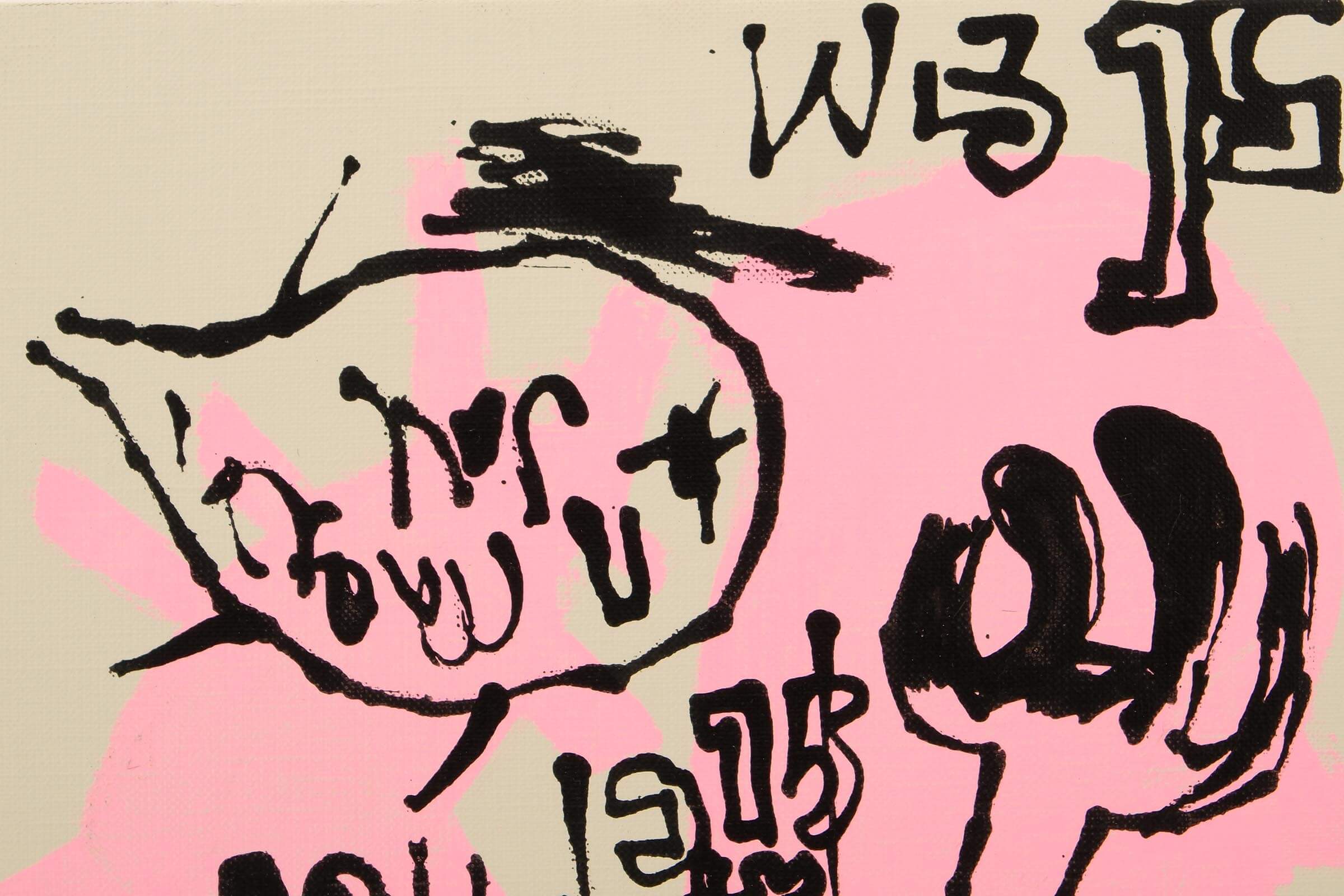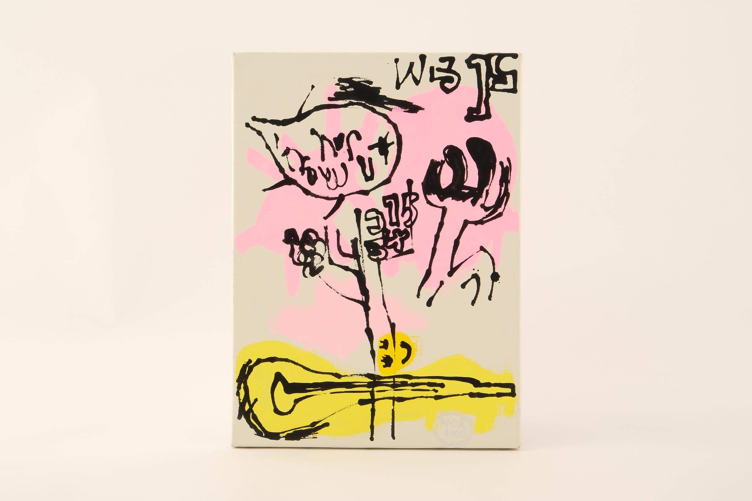 サイトウ:作るときは衝動的な自分と、それを見つめる冷静な自分もいますね。モチーフにしているのは太陽や風といった自然の体感や、混沌とした今の世界のモヤモヤした感じとかですね。モヤモヤ感は数字で、メッセージは文字で表現します。作品には詩があることも多く、誌的イメージもあります。いろいろと大変な世の中ですが、私の作品を見たときには太陽の暑さや風の気持ち良さを感じてほしいですね。でも、作品を通してもっといろんなことを伝えられるんじゃないかという気持ちもあって、今もそれを探しながら描いています。