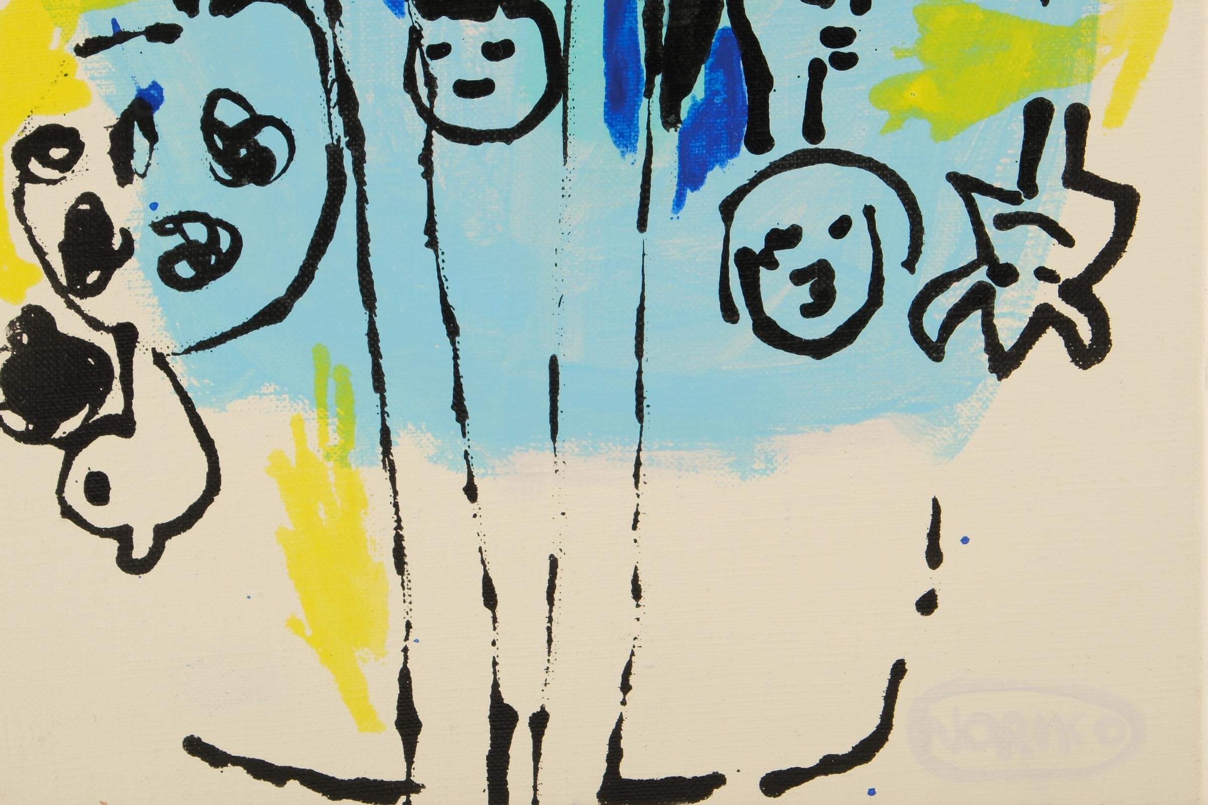 サイトウ:作るときは衝動的な自分と、それを見つめる冷静な自分もいますね。モチーフにしているのは太陽や風といった自然の体感や、混沌とした今の世界のモヤモヤした感じとかですね。モヤモヤ感は数字で、メッセージは文字で表現します。作品には詩があることも多く、誌的イメージもあります。いろいろと大変な世の中ですが、私の作品を見たときには太陽の暑さや風の気持ち良さを感じてほしいですね。でも、作品を通してもっといろんなことを伝えられるんじゃないかという気持ちもあって、今もそれを探しながら描いています。