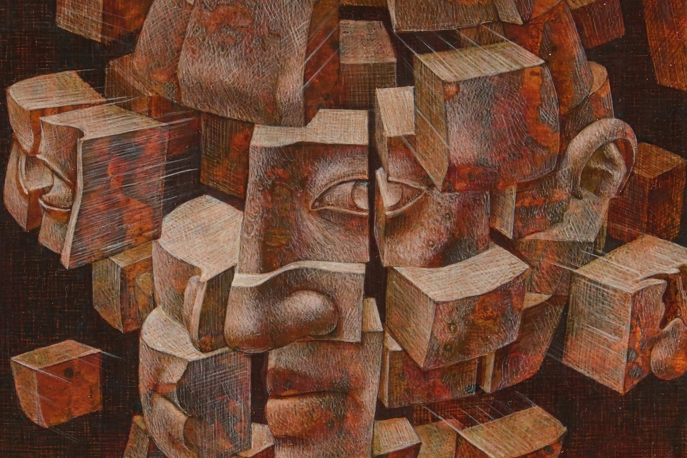 作田:そうです。私の表現する感情はネガティブなものがほとんどです。今までは自分が分裂していくイメージをストレートに描いていましたが、最近は違う描き方を模索しています。緻密なのは得意技というか、それしかできないんです。私は見たイメージをサッと描けるタイプではないので、緻密に描くしかない。そうすると自然と工芸的な感じになり、その質感が好きなんです。
