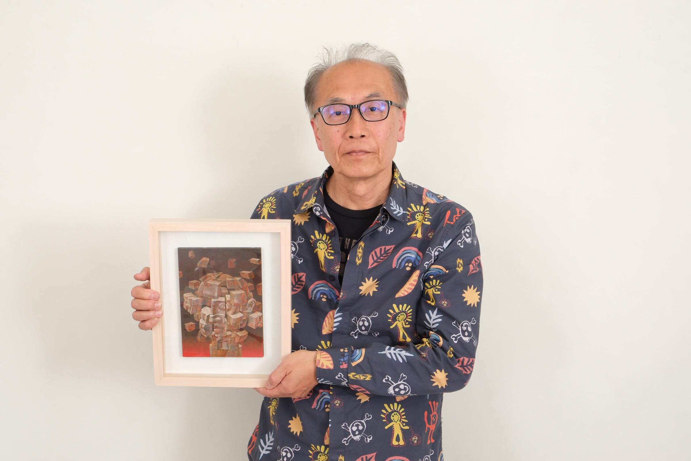 作田:大学卒業後は美術の先生をしながら、コラージュを銅版画で表現した作品を作り続けて、ある程度の評価を受けました。当時の作品は感情を入れ込まないシュールな表現でしたが、それを続けていくうちに自分のやりたいことが分からなくなり、今の作風にたどりつくまで迷い続けました。転機は45歳の頃に在学研修でオランダへ行ったときでした。現地のアトリエで滞在制作をするときもコンセプトが浮かばずに考え込んでいたら、“考えている自分を描こう”と思い、それが自分のなかで腑に落ちたんです。今までと真逆な“感情の表現”ですね。