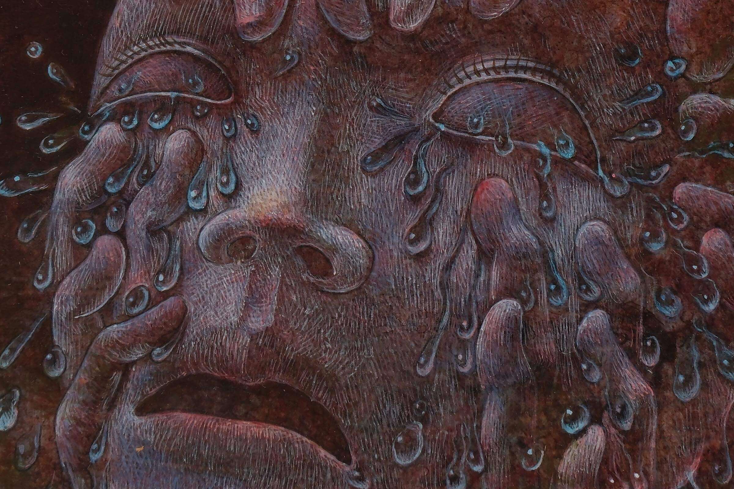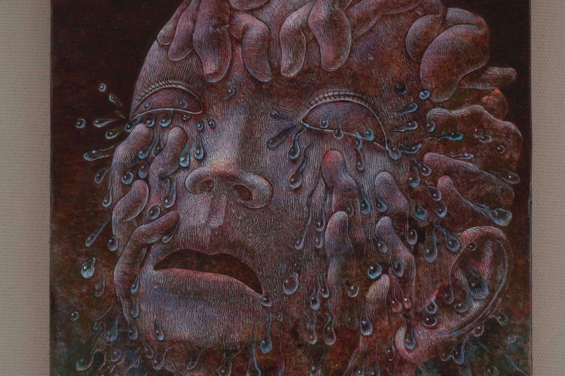 作田:そうです。私の表現する感情はネガティブなものがほとんどです。今までは自分が分裂していくイメージをストレートに描いていましたが、最近は違う描き方を模索しています。緻密なのは得意技というか、それしかできないんです。私は見たイメージをサッと描けるタイプではないので、緻密に描くしかない。そうすると自然と工芸的な感じになり、その質感が好きなんです。