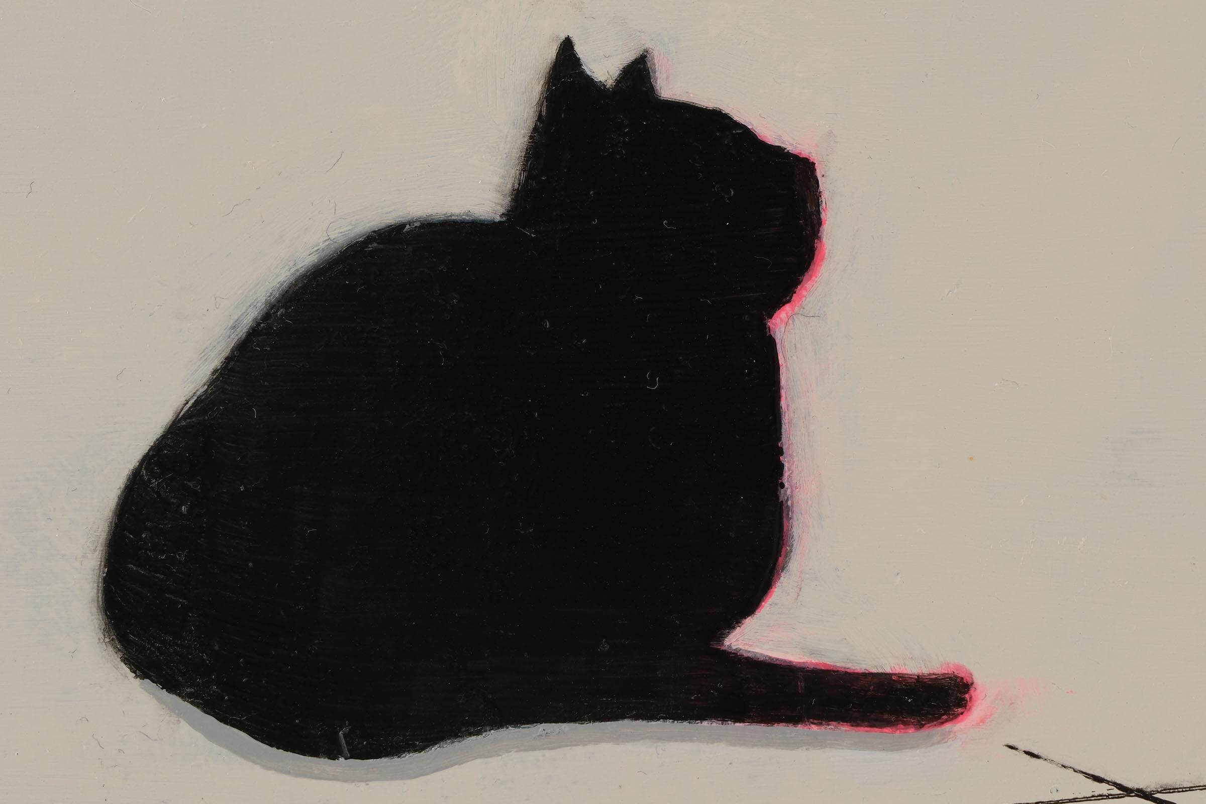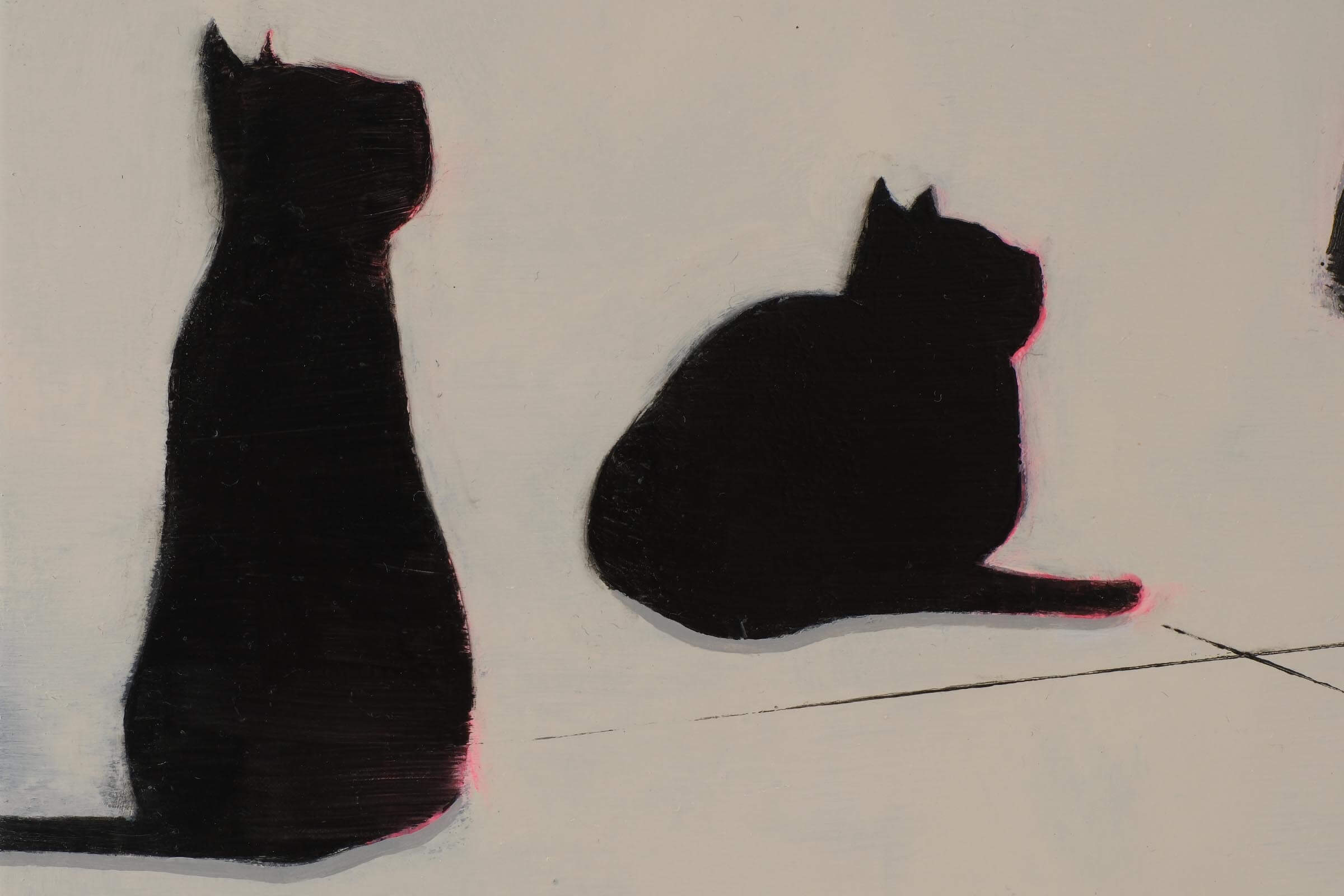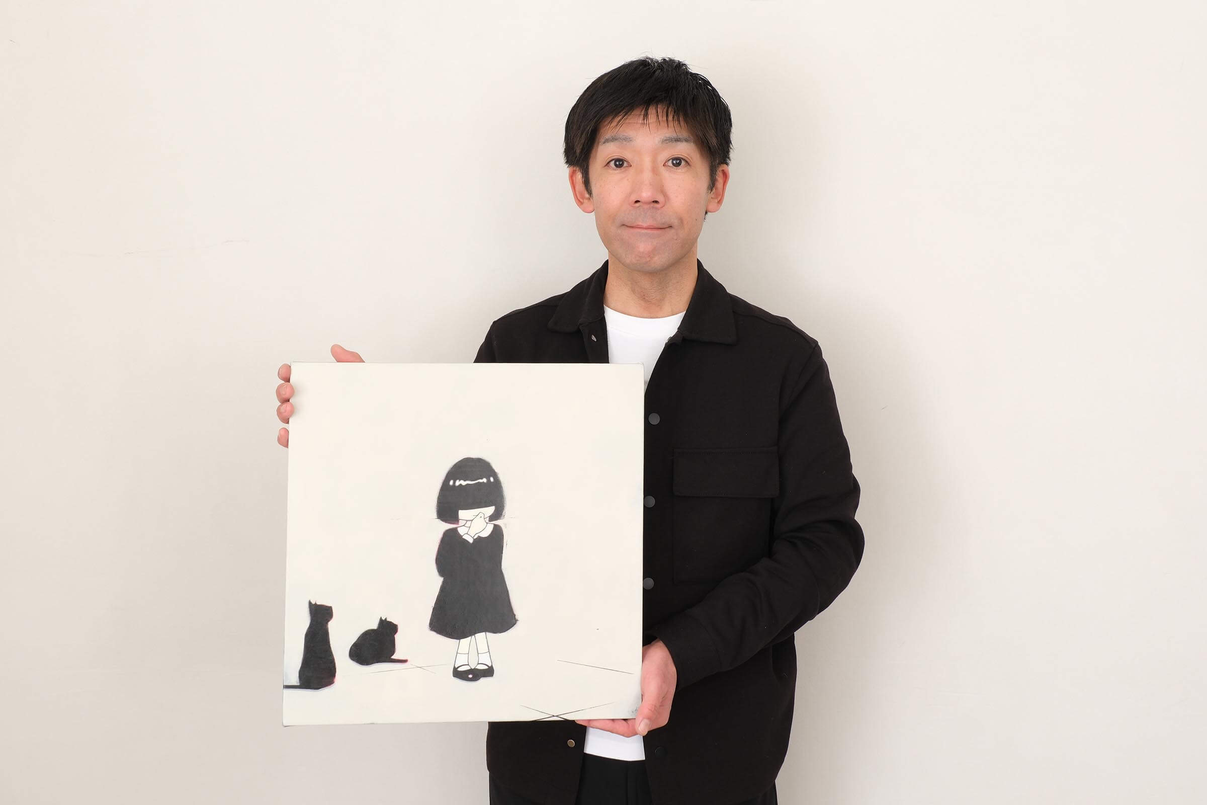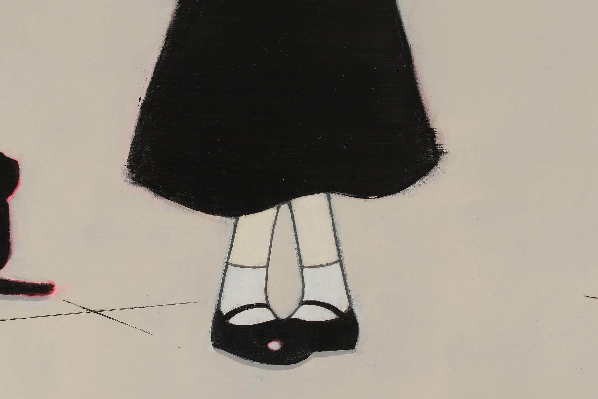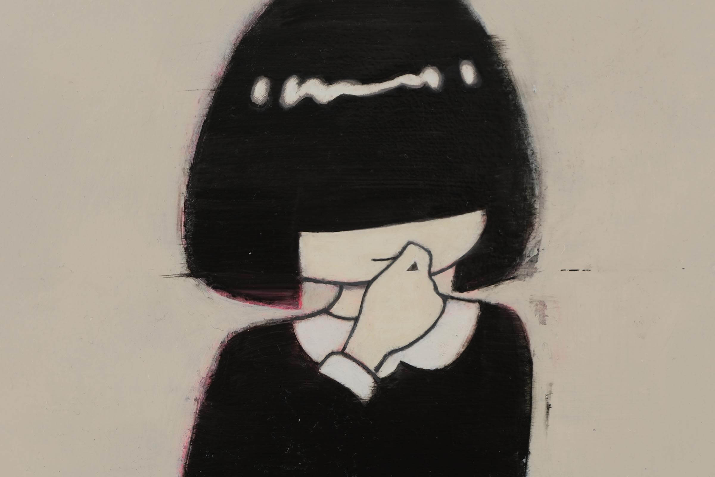 あまり好きではない部類の言葉なので困ってしまい、自分が許容できる「ウケる」のシチュエーションを考えました。女の子が小声で「ウケる」と言うくらいならと思い、普段は無口な女の子が笑ったシチュエーションを描きました。ミステリアスな感じを出そうと思い、それを猫に託しました。ところどころ絵具がはみ出たり飛び散ったりしている部分がありますが、これは、描いたり消したりを繰り返し、その過程で生じたミスや迷いの痕跡もなるべくそのまま残そうとしているためです。「ウケる」という題名でこの作品を見て、納得してもらえたら嬉しいです。